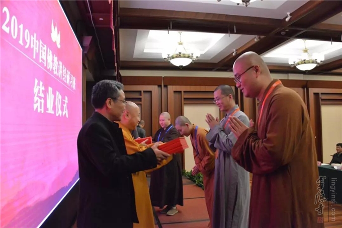 2019年4月10日下午,由中国佛教协会主办、杭州市佛教协会协办,中国佛教讲经交流基地和杭州灵隐寺共同承办的"2019中国佛教讲经法师研习班"在杭州灵隐寺圆满结业。40余位学员喜获结业证书。参加此次研习班的学员均为历届全国佛教讲经获奖法师。