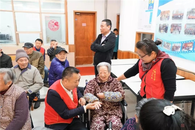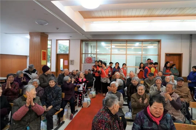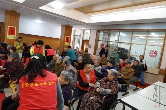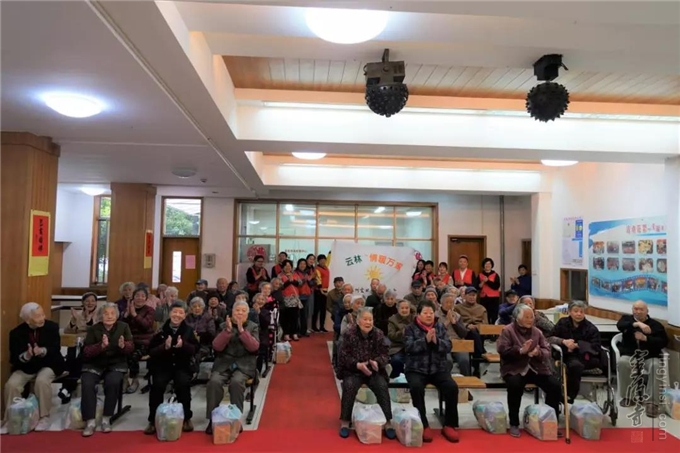 2019年4月16日上午,杭州云林公益基金会的爱心志愿者们走进杭州朝晖五区下城老人公寓,向150位老人送去春天的问候和爱心。