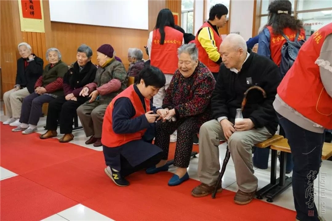 爱心志愿者还热情帮助老人剪指甲,与老人们亲切交流。有两位奶奶说,本来打算明天让阿姨帮着剪指甲的,今天好幸运,由你们来给剪了,非常开心。