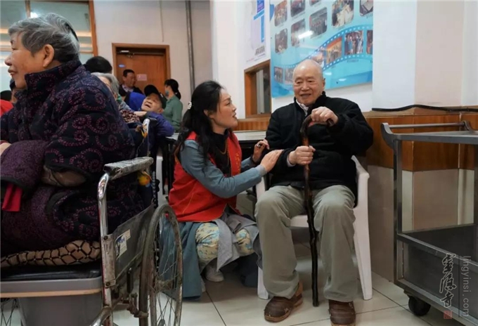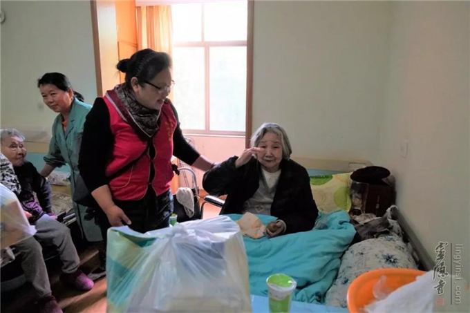 杭州下城老人公寓有三位百岁老人。104岁的周奶奶在这里养老已经有15个年头,她看到志愿者的到来,十分开心,她感谢杭州云林公益基金会经常派人来看望她。周奶奶看起来气色很好,也很健谈,平时还力所能及地帮助周围的老人。