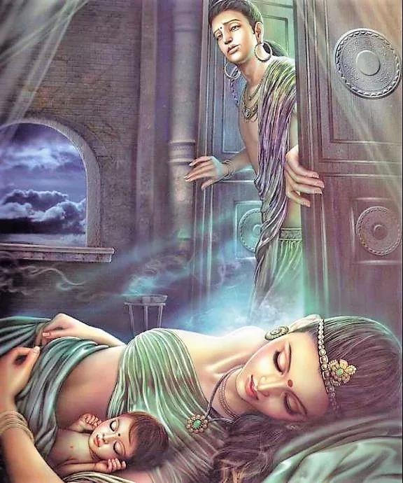 在小罗睺罗出生的第七个晚上,悉达多王子骑上一匹白骏马离开了皇宫,出家修行。那天晚上,所有皇宫的人员、侍卫沉睡不醒,没有人注意到悉达多王子的这个举动。小罗睺罗自然也不例外,安睡在妈妈的怀中。有很多思想家和佛学家喜悦地称,那一天为人类共同福报的显现。