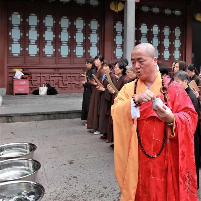 主法法师,以大悲净水,