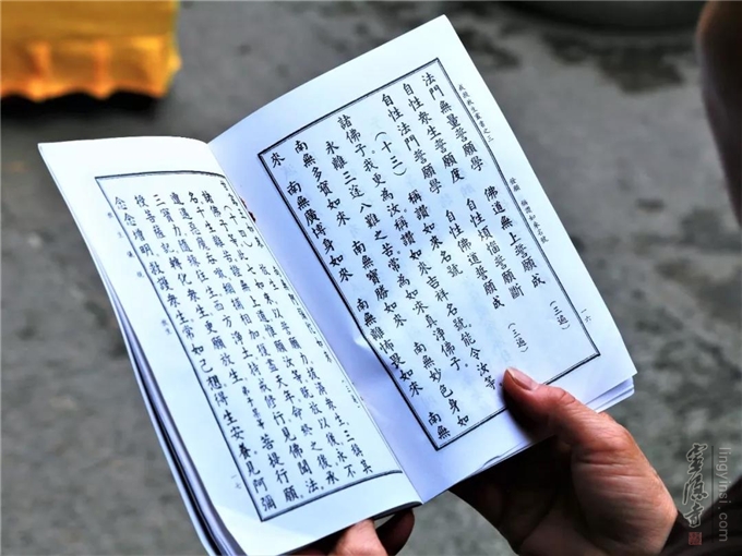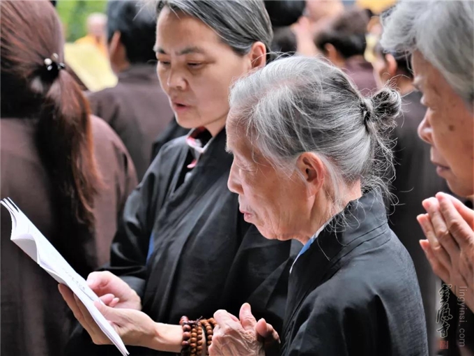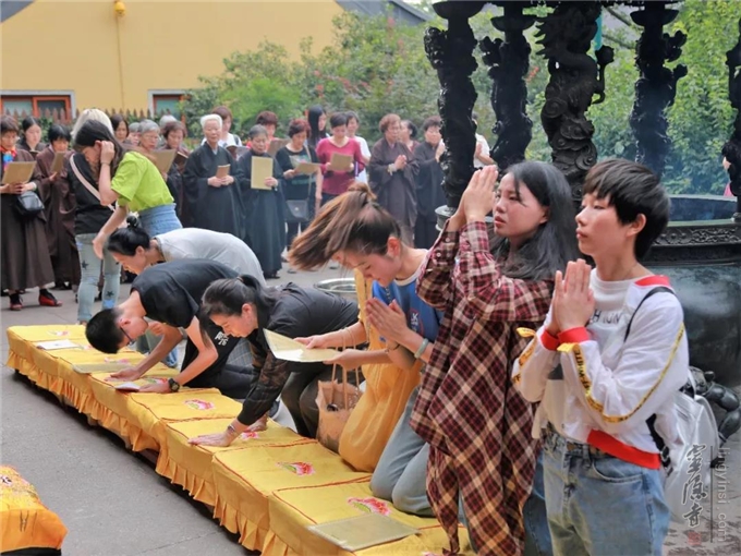主法法师、常住僧众带领善信居士,依仪轨诵《大悲咒》《心经》、读忏悔文、皈依文、发愿文、回向文。