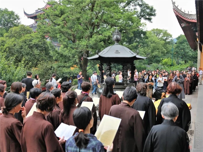 2019年6月17日(农历五月十五),杭州灵隐寺依佛教仪轨举行放生法会。