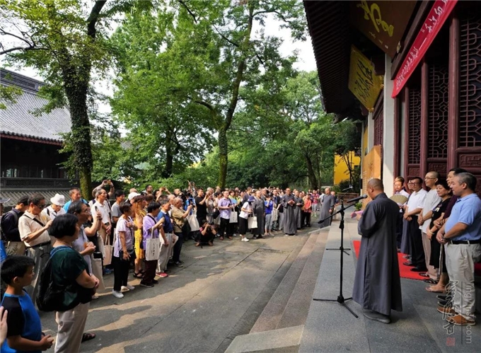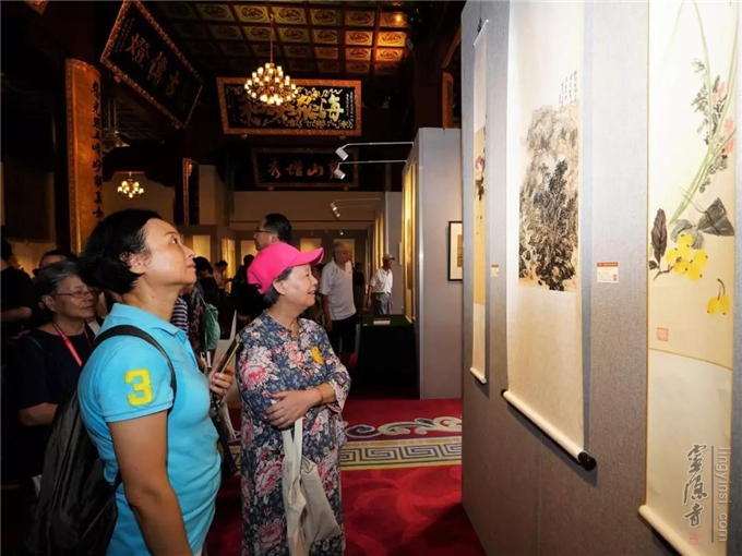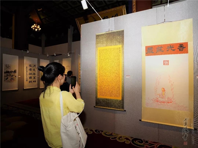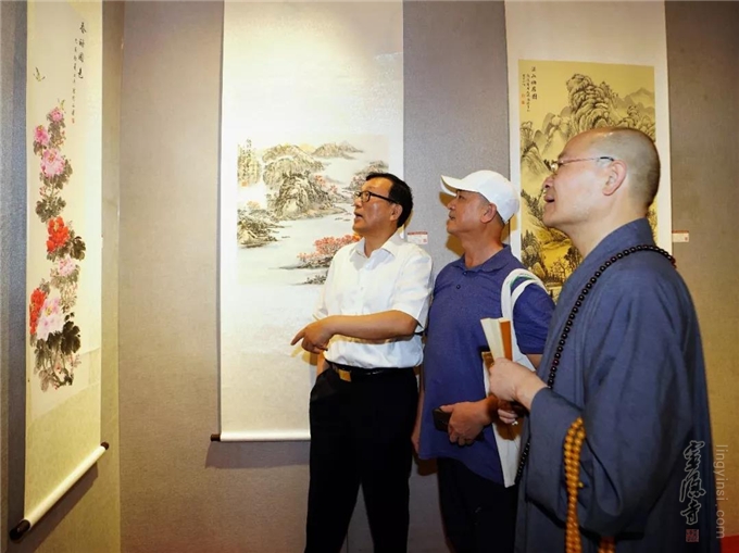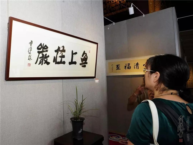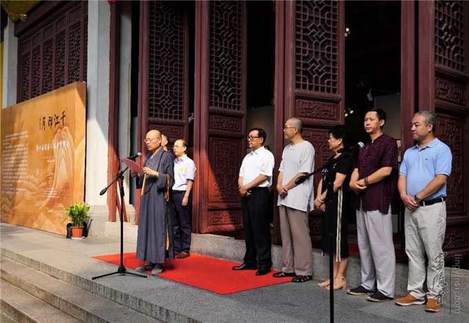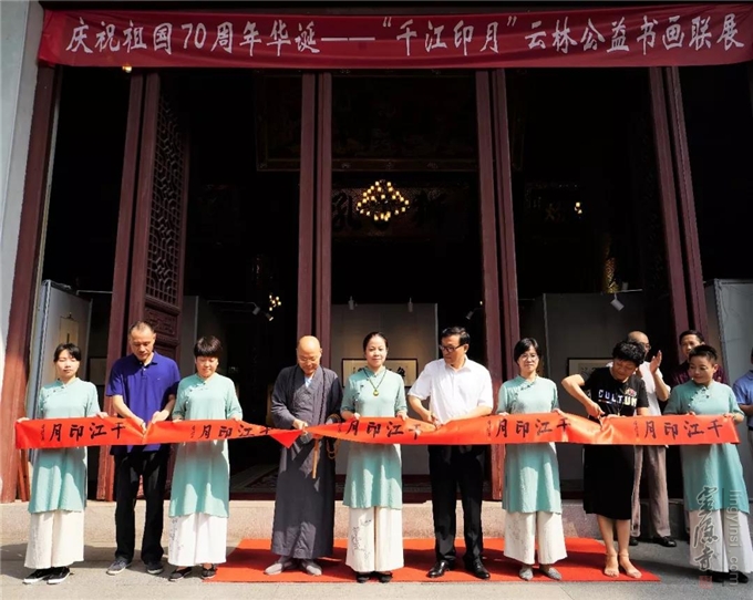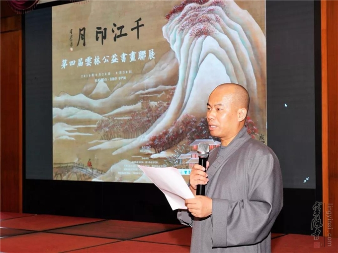 "千江印月·第四届云林公益书画联展"于2019年8月20日在杭州灵隐寺直指堂正式对外展出。杭州灵隐寺方丈光泉法师致开幕词。原浙江省十一届政协副主席张鸿铭、浙江省女书法家协会主席李军、美术报副总编赵辉等应邀为开幕式剪彩。来自参展单位的代表和参展书画作品作者160余人参加了开幕式。