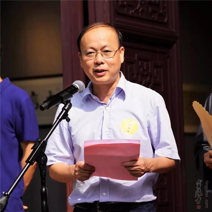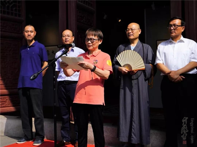 本次书画联展的协办单位代表采荷街道党工委书记范国良、参展作品作者代表米市巷街道书画院何美珍等分别在开幕式上发言。他们对杭州灵隐寺积极开展社区文化共建,热心社会公益、丰富居民文化生活等活动,给予极高的评价。