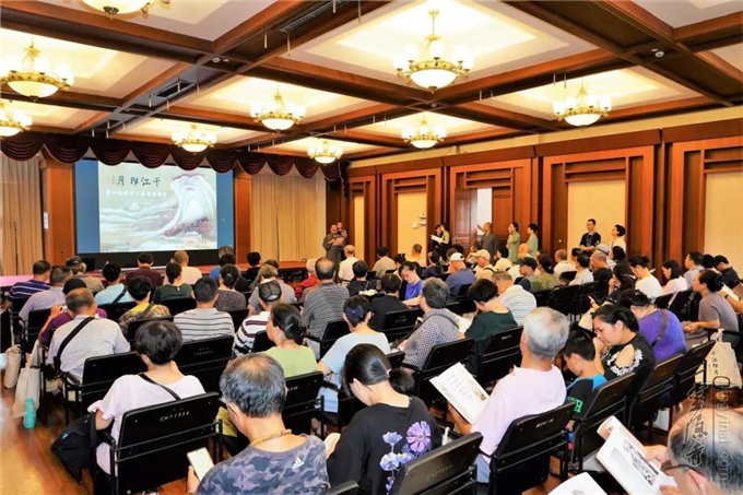 "第四届云林公益书画联展"颁奖仪式后,浙江云林书院开设的"墨趣禅意—云林书画艺术研修班"第一课开讲,云林书画艺术总顾问卢家华老师作"禅宗书画欣赏"的讲座。
