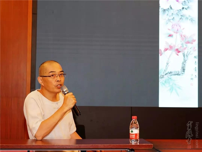 ▲卢家华老师作"禅宗书画欣赏"讲座