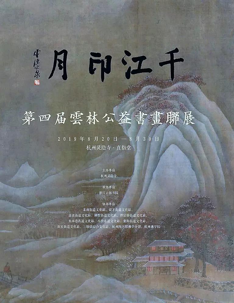 "千江印月·第四届云林公益书画联展"由浙江云林书院携手杭州采荷、留下、清波、湖墅、拱宸桥、米市巷、小营、紫阳、南星街道和三墩镇、杭州图书馆佛学分馆、杭州佛学院等12家单位共同举办。
