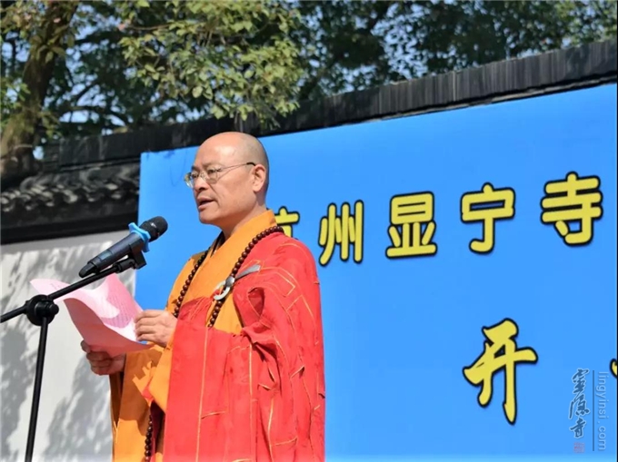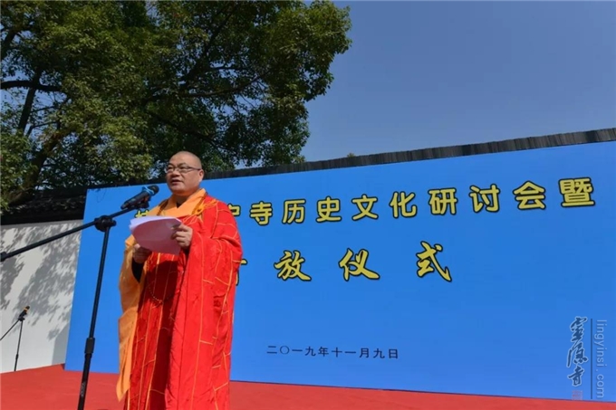 杭州市佛教协会常务副会长、韬光寺方丈月真法师主持了"杭州显宁寺历史文化研讨会暨开放仪式"。