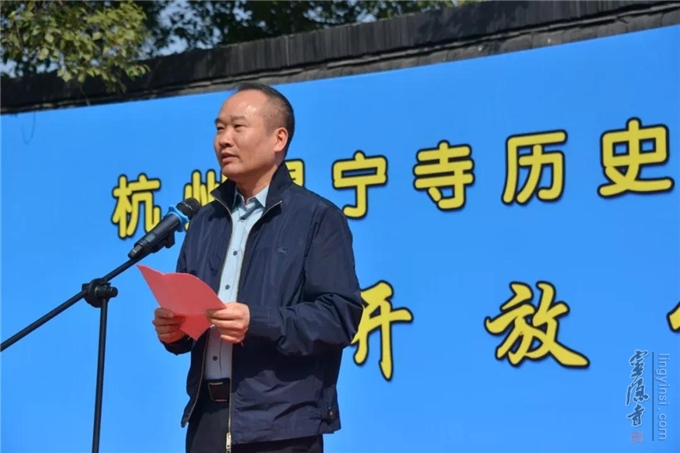 拱墅区委常委、统战部部长赵红代表拱墅区委、区政府,对显宁寺的未来发展和系统规划提出要求,他说要建设好杭州显宁寺,为拱墅区积聚文脉人气和文化繁荣做出贡献。