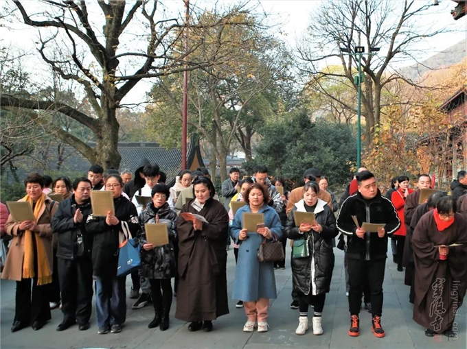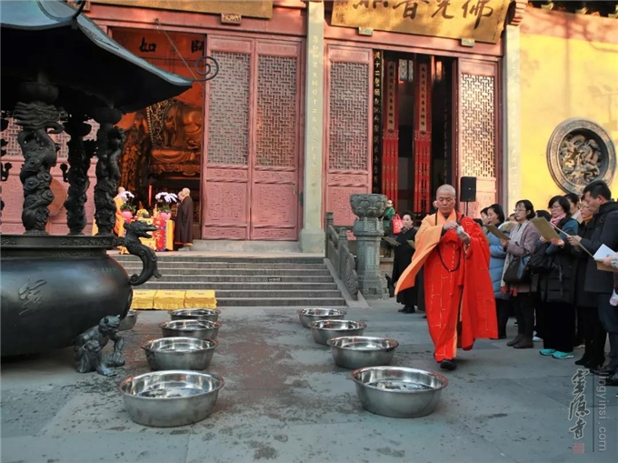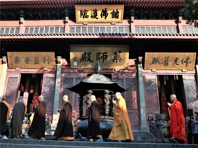 2019年12月10日(己亥农历冬月十五),杭州灵隐寺依佛教仪轨,在药师殿前举行冬月慈悲放生法会。放生功德回向:世界和平,国泰民安,众生幸福、祥和、安乐。