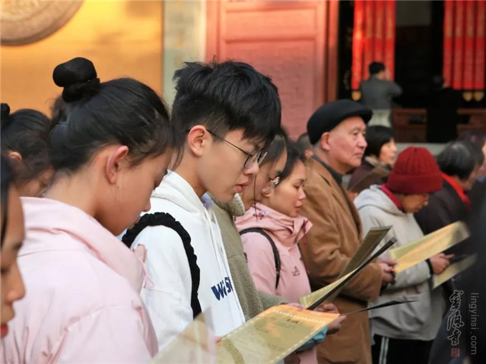 主法法师、常住僧众带领善信居士,依佛教仪轨诵《大悲咒》《心经》、读忏悔文、皈依文、发愿文、回向文。
