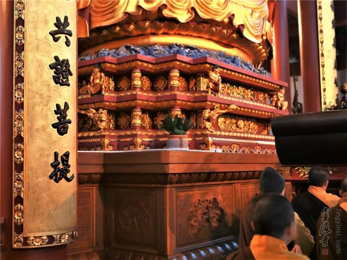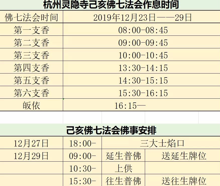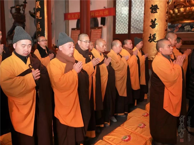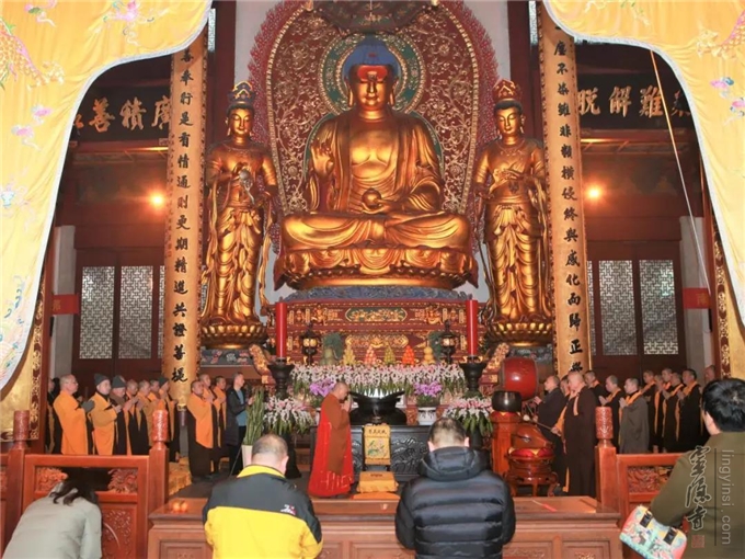 2019年12月23日(农历十一月廿八),杭州灵隐寺己亥冬季"佛七"祈福法会在药师殿起香。"佛七"法会,精进念佛,至十二月初四结束。