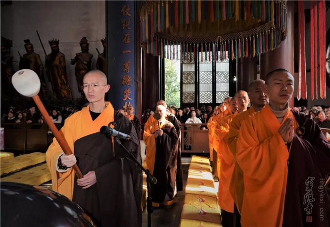 吉祥钟声迎来了新的一年。2020年1月1日,杭州灵隐寺在在大雄宝殿举行上堂大斋法会。灵隐寺方丈光泉大和尚拈香主法、上堂说法、广度有情。