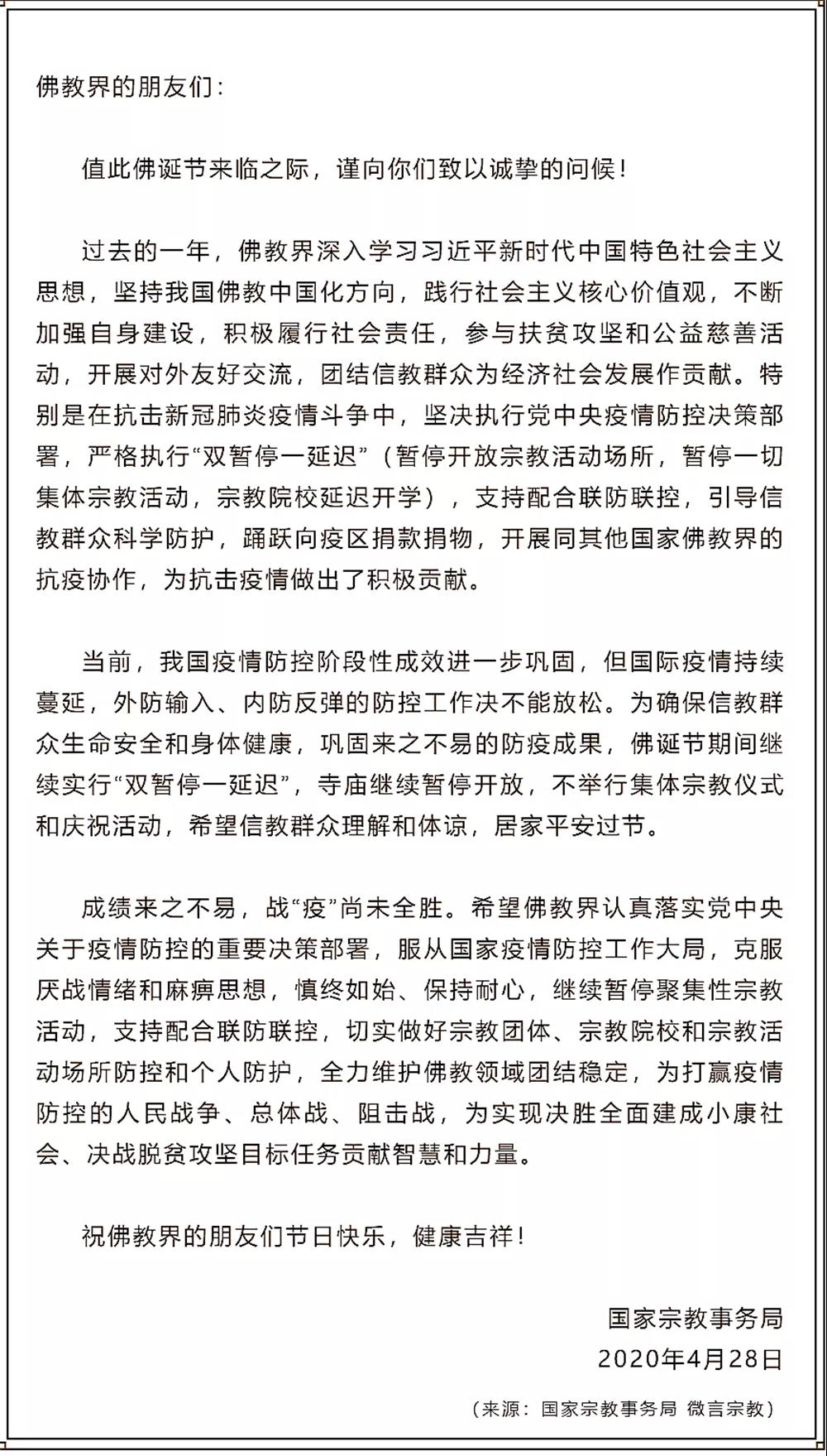 佛诞节将临 国家宗教事务局致佛教界节日贺信
