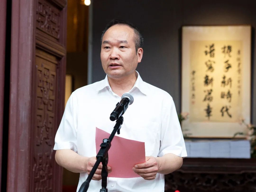邵根松在讲话中肯定了杭州佛教界近年来在加强爱国主义教育,推动佛教事业健康发展方面做出的重要成绩,并对本次书画展表示热烈祝贺。他说,此次展出的书画作品讴歌了中国共产党成立100周年来的光辉历程和丰功伟绩,大家用多种书画形式表达对祖国、对人民、对中国共产党的真挚感情,体现了对中国特色社会主义的道路自信、理论自信、制度自信、文化自信。他希望杭州市宗教界人士以此为契机,展风采、筑同心、聚力量,与党同心同向同行,为实现中华民族伟大复兴的中国梦作出新的更大贡献。