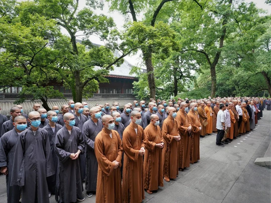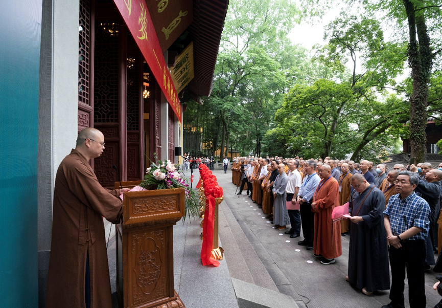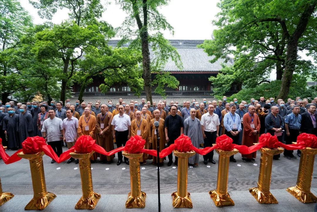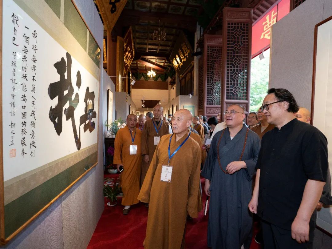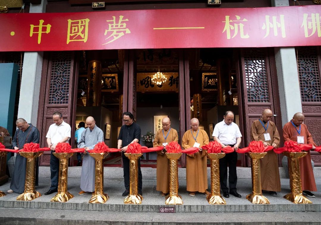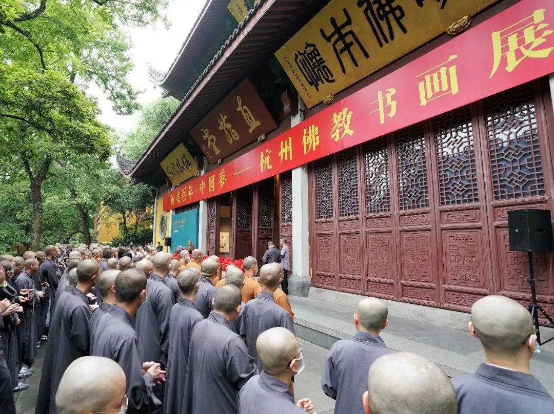 2021年5月12日上午,在全国上下喜迎中国共产党100周年华诞之际,杭州市佛教协会举办的“沧桑百年·中国梦——杭州佛教书画展”在灵隐寺直指堂开幕。在杭参加中国佛教协会第十届理事会文化艺术委员会第一次会议的代表出席开幕式。