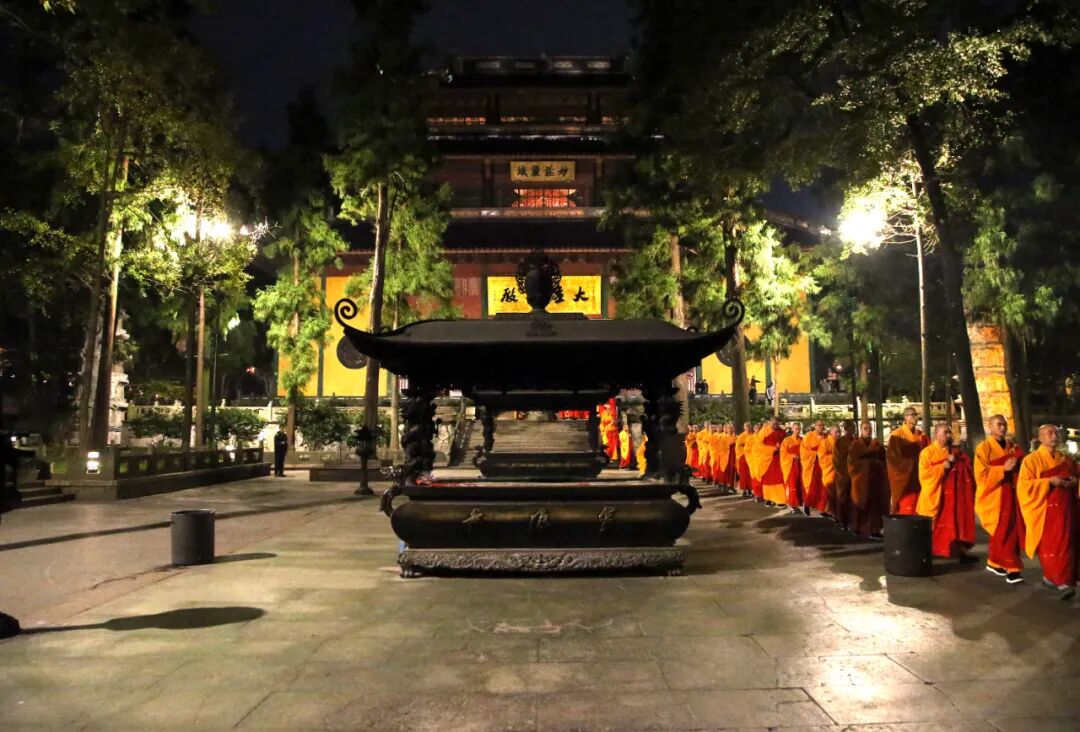 11月2日清晨7时许,灵隐寺内法幢高树、梵唱清扬,乙巳年法界圣凡水陆普度大斋胜会正式启建。主法法师在药师殿(大坛)内拈香主法,领众礼佛,诵拜《梁皇宝忏》。水陆法会之华严坛、诸经坛、楞严坛、法华坛、净土坛等坛场均依照仪轨,开启诵经念佛等法事。