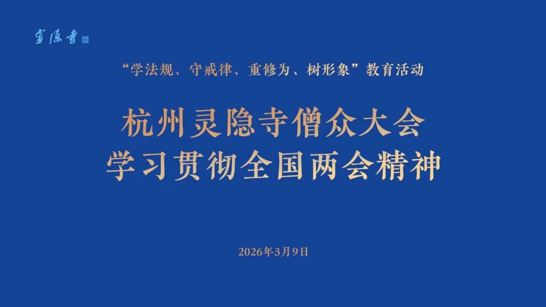 会议要求,全寺上下要将学习贯彻全国两会精神与持续深化“学法规、守戒律、重修为、树形象”教育活动紧密结合,始终坚持佛教中国化方向,不断加强僧团道风建设,以戒为师、精进修持,确保灵隐寺各项工作与党和国家同心同向、同频共振,为促进宗教和顺、民族和睦、社会和谐发挥积极作用,以优异成绩迎接“十五五”规划开局之年。
