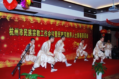 2011年1月21日上午,"2011年杭州市民族宗教界人士新春茶话会" 在浙江紫晶大酒店隆重举行。全市民族宗教界代表人士、少数民族代表人士、区县(市)民宗局领导等共200多人欢聚一堂,喜迎新春、畅叙友谊,共商深入贯彻落实科学发展观、推进民族宗教工作的大计。市人大常委会副主任陈重华、副市长张建庭以及省、市有关部门负责同志出席茶话会。