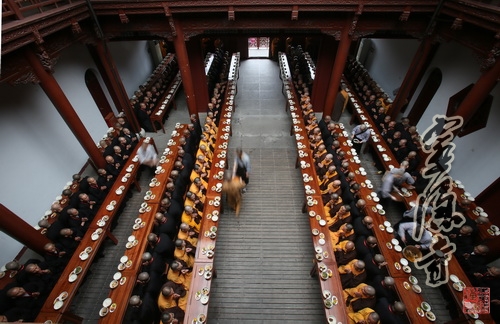 下午,开堂师芳振法师向戒子们教授碗筷仪:过堂时,如何列队前往五观堂,怎样如法使用碗筷等等。