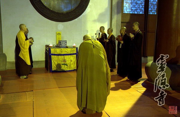 下午,戒子们参加纪念杭州市佛教协会已故老会长俞昶熙居士逝世两周年诵经回向法会,我寺首座继云老和尚主法。