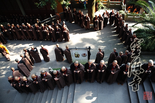 2013年10月12日,农历九月初八,灵隐寺癸巳年传授护国兴圣二部僧三坛大戒法会进入第十七天:教遮难文、演匍伏班、拜愿。