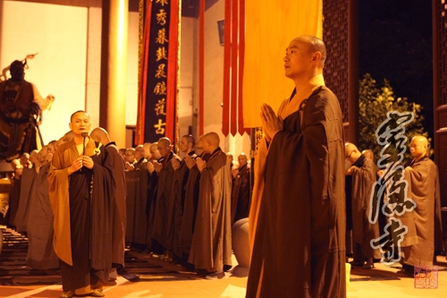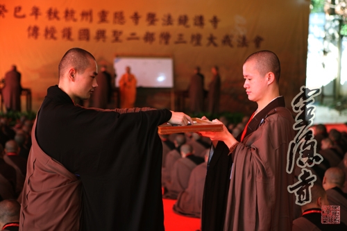 2013年10月14日,农历九月初十,灵隐寺癸巳年传授护国兴圣二部僧三坛大戒法会进入第十九天:演供十师斋、明习仪、拜愿。