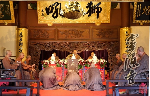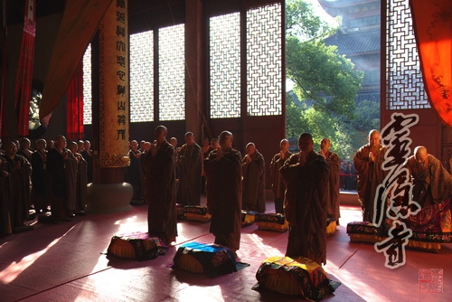 2013年10月16日,农历九月十二,灵隐寺癸巳年传授护国兴圣二部僧三坛大戒法会第二十一天,全天登坛受比丘戒、拜愿忏摩。
