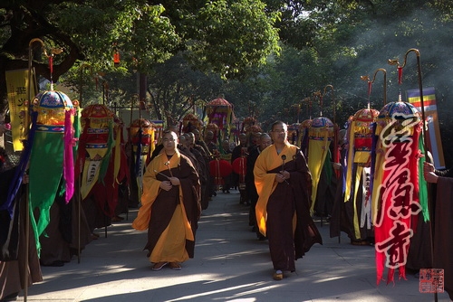 当天上午,新戒弟子首先至方丈室迎请十师。戒子们持着庄严的幢、幡、提炉等仪仗为先导,队列中依次为七位尊证师、羯磨师和教授师,最后是戒和尚。
