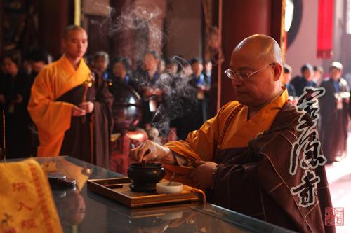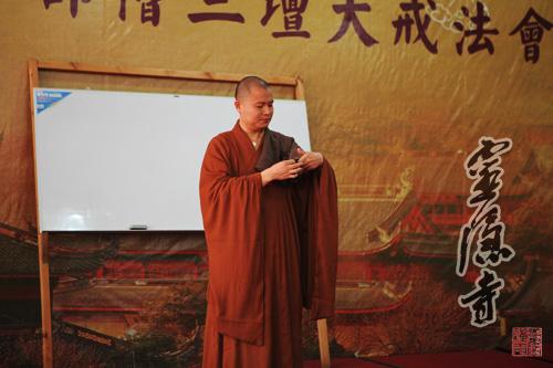 2013年10月20日,农历九月十六,灵隐寺癸巳年传授护国兴圣二部僧三坛大戒法会第二十五天:讲比丘戒,菩萨戒居士听和尚开示、学习穿海青搭衣。