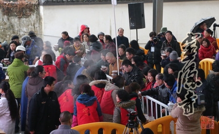 到上午9时许,灵隐寺三墩望月公寓施粥才告圆满,在绵绵的冬雨和法喜中,义工们欢喜地和灵隐寺的法师们合影留念。