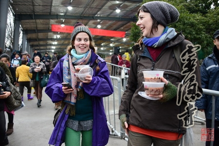 信佛的老人捧着灵隐寺法师们亲手递上的粥,笑得合不上嘴,不停的口诵佛号感恩三宝。
