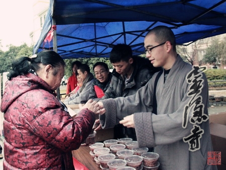 市民们听说是灵隐寺的法师们一早过来施粥的,都直说:"感恩师父,辛苦了。"