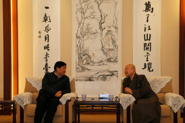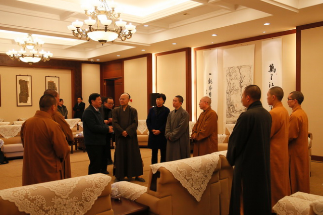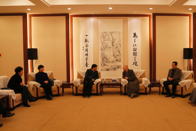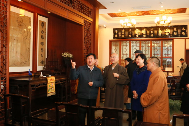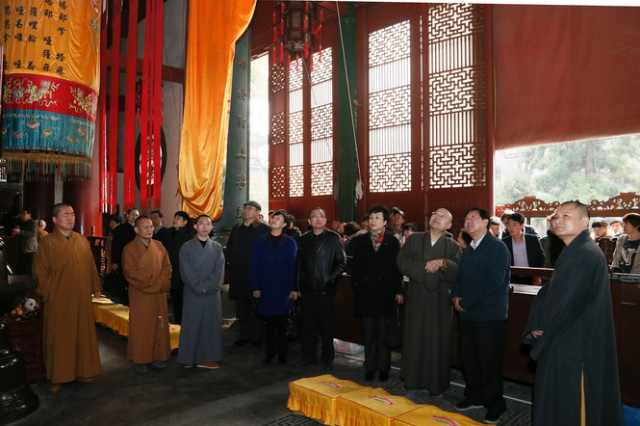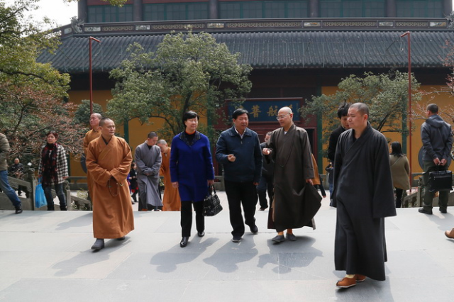 2015年3月11日上午,浙江省人大常委会副主任毛光烈一行,在杭州市民宗局党组书记杨志刚的陪同下,赴灵隐寺调研宗教工作,受到灵隐寺方丈光泉大和尚的热情接待。
