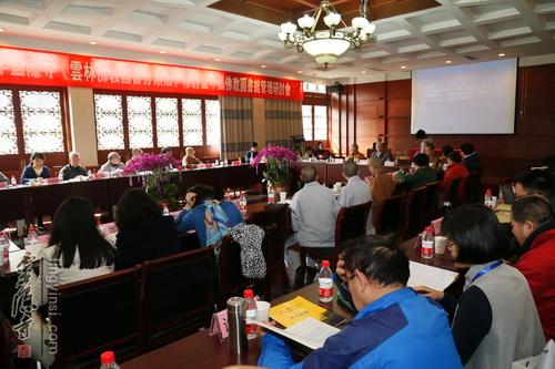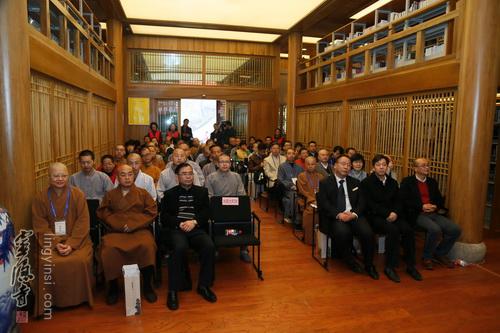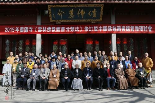 2015年3月26日,灵隐寺云林图书馆内,书香法喜,交相辉映,群贤毕至,共倡弘法。灵隐寺"《云林图书分类法》修订暨中国佛教图书馆管理研讨会"的开幕式正在进行之中。灵隐寺方丈光泉大和尚现场介绍了灵隐寺云林图书馆的历史和现状,感谢参会法师、学者为佛教图书的保存利用和佛法的传播建言献策。台湾香光尼众佛学院图书馆的自衍法师在发言中,赞叹灵隐寺整合各方资源,对佛教目录学和佛法传播所做的贡献。浙江图书馆徐晓军馆长和杭州图书馆褚树青馆长也相继发言,肯定灵隐寺建立云林图书馆以及在佛教图书分类方面的积极探索和研究,以及由此结出的丰硕成果。