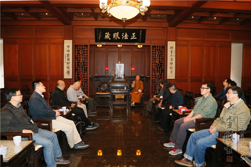 灵隐寺方丈光泉大和尚在联灯阁接待了考察团一行。他告诉客人,中国佛教是一个只重实证不重宣传的宗教,以致南怀瑾先生都疑惑于为什么灵隐寺名气如此之大,但在社会上却看不到灵隐寺做了些什么,这从另一个侧面也反映了媒体宣传对于当代佛教及文化弘扬的重要性。所以近年来灵隐寺在这方面正在加大力度,坚持修行与弘法并举,行动与宣传并进,努力继承和发扬佛陀49年说法利生的优秀传统,走出丛林,走出国门,走向世界。光泉大和尚还为大家介绍了中国佛教特别是禅宗的历史演变与宗风特点,并现场回答了关于人间佛教、佛性与性空等问题。