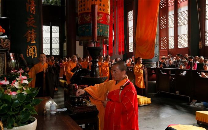 4月27日上午,古刹灵隐寺为尼泊尔等地震受灾地区举行消灾祈福法会,灵隐寺监院义广法师主持法会。