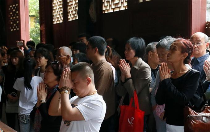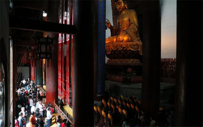 9时许,灵隐寺大雄宝殿宝相庄严,在消灾祈福的梵呗声中,监院义广法师拈香主法,四众弟子及各地香客同声诵念,以大众恭敬诵经功德广作回向,为此次地震中罹难者超度,助逝者安息,往生净土莲邦;也为受灾民众祈福,祈愿生者坚强,重建家园。