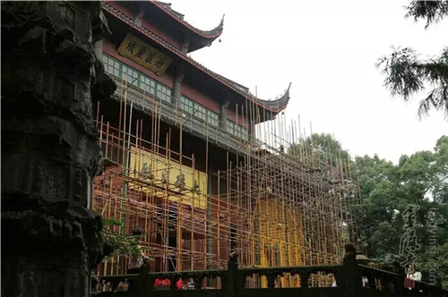 只是,这几天进了灵隐寺,很多人都好奇:大雄宝殿外面为什么搭满了脚手架?