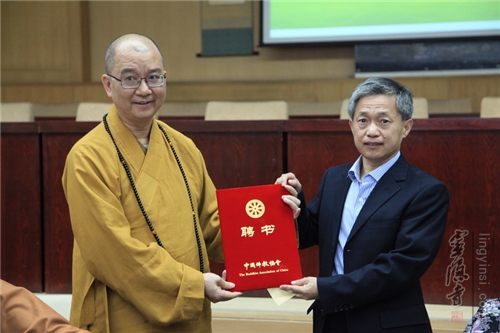 中国佛教协会学诚会长向专家学者颁发聘书