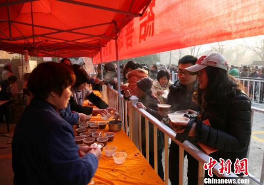 中新网杭州1月19日电(记者 沈兰)农历十二月初八是佛陀成道纪念日,也是杭州各大寺庙、中药号和各个社区免费施粥的日子。清晨五点半,杭城还在阴霾大雾笼罩中,辛勤的人们不畏严寒已经守候各个施粥点。