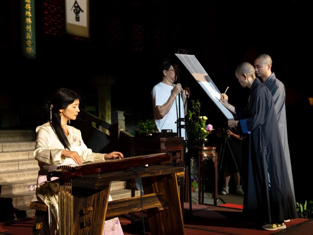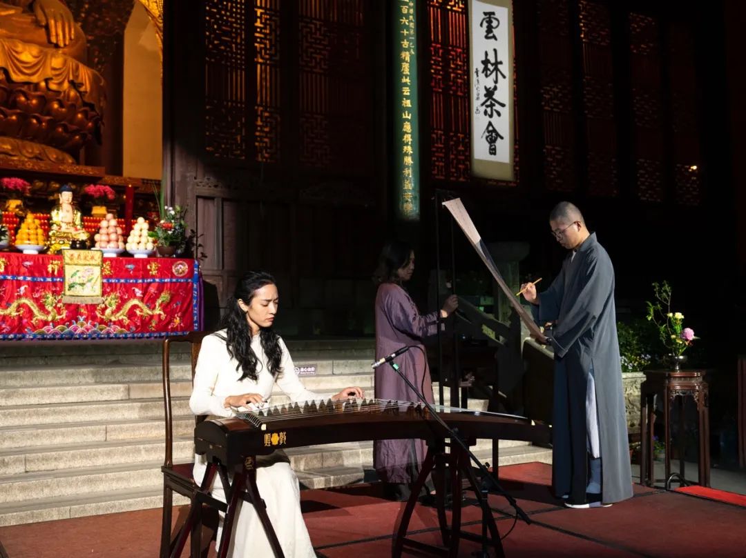 茶会中,伴随着清净的雅乐之声,在绘画与书法的展演中,我们通过禅、茶、墨的对话,感受到了传统文化的博大精深与无穷魅力,对于佛教中的智慧与慈悲之义也有了更深的理解。