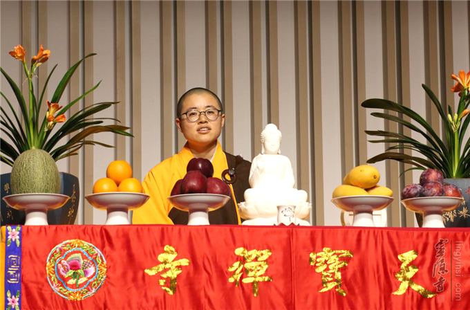 2016年第九届中国佛教讲经交流会获奖法师代表、广东佛学院尼众学院宏亮法师为大众作"如何安顿身心"的主题宣讲。