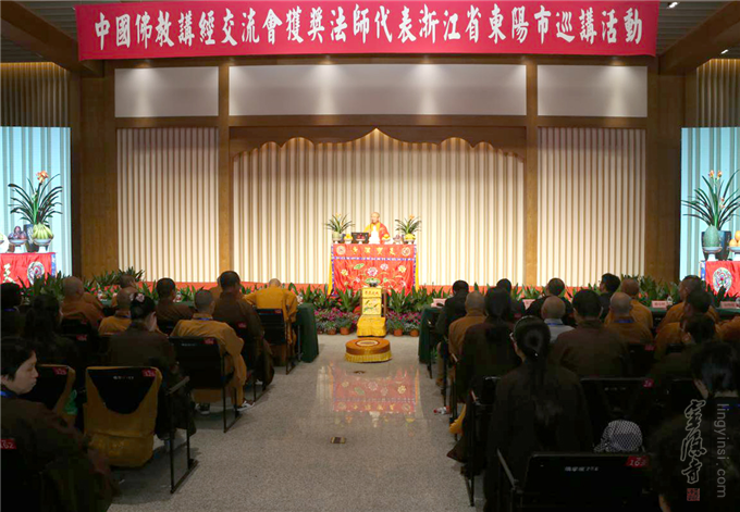 2017年4月23日,"中国佛教讲经交流会——讲经法师代表2017巡讲活动"在浙江省东阳市天宝寺正式举行,本次讲经活动由中国佛教协会主办;浙江省佛教协会、中国佛教讲经交流基地协办;浙江省东阳市天宝寺承办。浙江省民宗委副主任倪忠扬出席开幕式并致辞,活动现场近600位居士善信聆听了本次讲经开示。