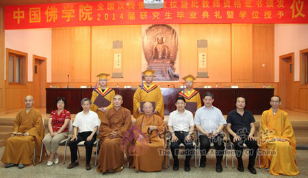为推进中国佛教教育发展,规范佛教院校管理,加强佛教院教师队伍建设,提高教师素质和教育教学水平,根据国家宗教局宗教院校《宗教院校教师资格认定和职称评审聘任办法(试行)》和《宗教院校学位授予办法(试行)》(以下简称《两个办法》)的相关规定和要求,2014年7月19日下午,中国佛教协会教育委员会在中国佛学院大礼堂举行了中国佛学院首批教师资格证书及学位授予资格证书颁发仪式。