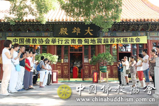 8月6日上午,中佛协在北京广济寺举行云南鲁甸地震超荐祈福法会。