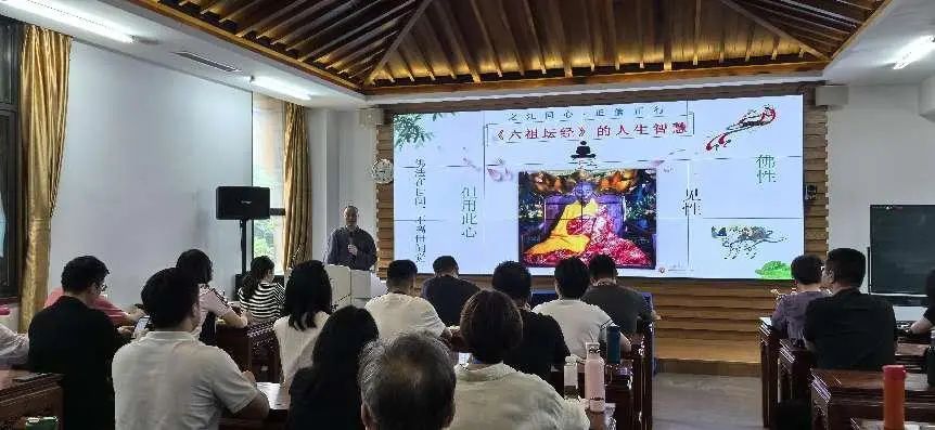 “山寺月中寻桂子,郡亭枕上看潮头。”9月13日-15日,云林书院第三十五期国学班桂月里在杭州佛学院举办,近百位来自国内多地的学员参加课程,共赴传统文化之旅。本期国学班课程是本年度第三次课程,也是云林国学班总第三十五期课程,开设了阳明心学、佛教宗派文化解读如禅宗文化及《六祖坛经》概说、净土宗文化及《净土十疑论》介绍,更有弘一法师与马一浮法缘解说、茶与中华人文美学漫谈等课程。通过三天的课程熏陶,学员们对中华传统文化的了解获得极大提升,对其魅力的感受也更加深刻。法灯法师的“禅与中华文化”通过禅宗文化与中国文学内容、禅宗文化与寺院建筑和佛教造像、禅宗文化对中华文化的影响三个方面讲述了禅宗文化在中华传统文化中重要地位的形成背景,及其对中华文化的深远影响。常慧法师从“佛性、悟性、心性”三个方面介绍了禅宗的经典《六祖坛经》中所蕴含的人生智慧、宇宙大道。作为禅宗的代表经典的《六祖坛经》是佛教向中国化发展的华丽转身,其中蕴含的“即心是佛”的佛性理论、“道由心悟”的修养论、“即世间求解脱”的解脱论,为禅宗文化成为中华文化的重要组成部分奠定了理论基础。允通法师的讲座“净土与《净土十疑论》”从净土、净土宗等概念入手,向学员们介绍了净土宗的基本理论和由天台智者大师口述而成的《净土十疑论》的主要内容。所谓“十疑”,就是该论对往生西方弥陀净土提出的十个疑难,基本上囊括了世人对净土法门进行理性思考的框架。浙江大学张家成教授的“心学故事中的人生智慧”讲座为大家呈现了时下比较受欢迎的阳明心学。讲座以大量的历史人文典故为承接,梳理了阳明心学体系中多个核心概念:“满街人都是圣人”“破山中贼易,破心中贼难”“良知”“因时制宜”“乐是心之本体”,鼓励学员们要明了“立志而圣则圣矣,立志而贤则贤矣”。青年的人生目标会有不同,职业选择也有差异,但只有把小我融入祖国和人民的大我之中,与时代同步伐,与人民共命运,才能更好实现人生价值,升华人生境界。杭州师范大学的陈星教授通过初识李叔同、复相过从、助缘佛教信仰、法界知音、缅怀弘一大师五个方面向学员们讲述了马一浮与弘一大师之间难得的法缘。李锋教授的茶与中华人文美学课从中华人文美学(形色、德性、天地、文艺)、中华茶美学(茶礼、茶艺、茶道)、禅茶一味(朴、雅、和、寂、净)三个方面展现了中华人文美学之美的内涵。诙谐幽默的谈吐、侃侃而谈的风格受到了广大学员的由衷喜爱!云林书院自2014年开办公益性国学班以来,至今已有近四千人次参与学习,其中既有来自杭州本地的学员,也有来自国内不同省市的外地学员,既有初中文化的基层人士,也有硕士和博士研究生学历的社会精英。书院作为民非组织始终秉持“担社会之责,承文化之秀”的初心,践行和响应政府提出的《关于实施中华优秀传统文化传承发展工程的意见》的号召,积极向社会大众介绍和传播优秀的中华传统文化,旨在以一堂课、一本书、一句话的朴素之愿撒播传统,浸润众生,为鼓励社会大众汲取向上向善的优秀文化营养,促进社会和谐贡献力量!