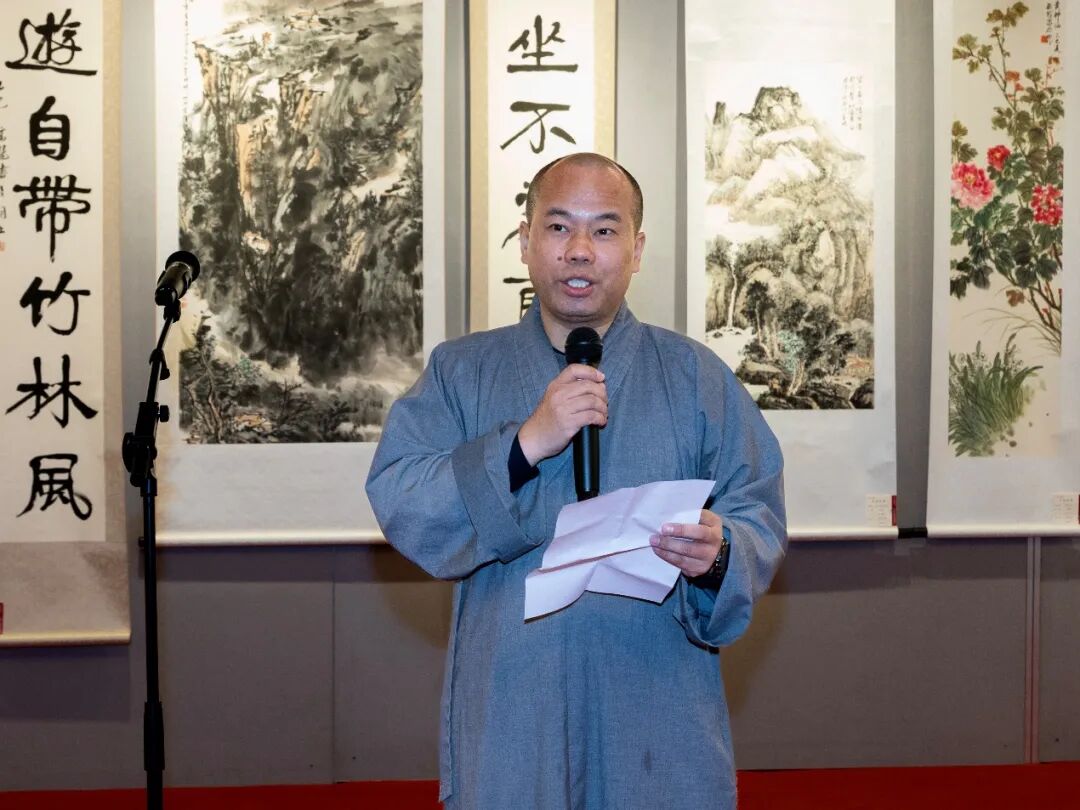 慧澄法师代表主办方致辞,提到云林公益书画联展具有“展示杭州市民的文化素养、促进社区文化交流走亲、弘扬中华优秀传统文化”的三大平台功能。并且每年通过邀请专业老师点评,引导大众爱好者提升审美艺术境界;还通过培训书画专长志愿者团队,为观展群众提供导览服务,把美的艺术传播给更多社会群体。